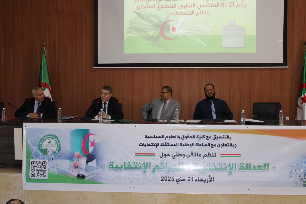 إحتضنت جامعة الشلف يوم 21 ماي 2025 على مستوى القطب الجامعي أولاد فارس، فعاليات الملتقى الوطني الموسوم بـ “العدالة الإنتخابية: الجرائم الإنتخابية” بالتنسيق مع كلية الحقوق والعلوم السياسية وبالتعاون مع السلطة الوطنية المستقلة للإنتخابات، تحت إشراف السيد مدير جامعة الشلف، والسيد والي ولاية الشلف، بحضور السادة والسيدات: