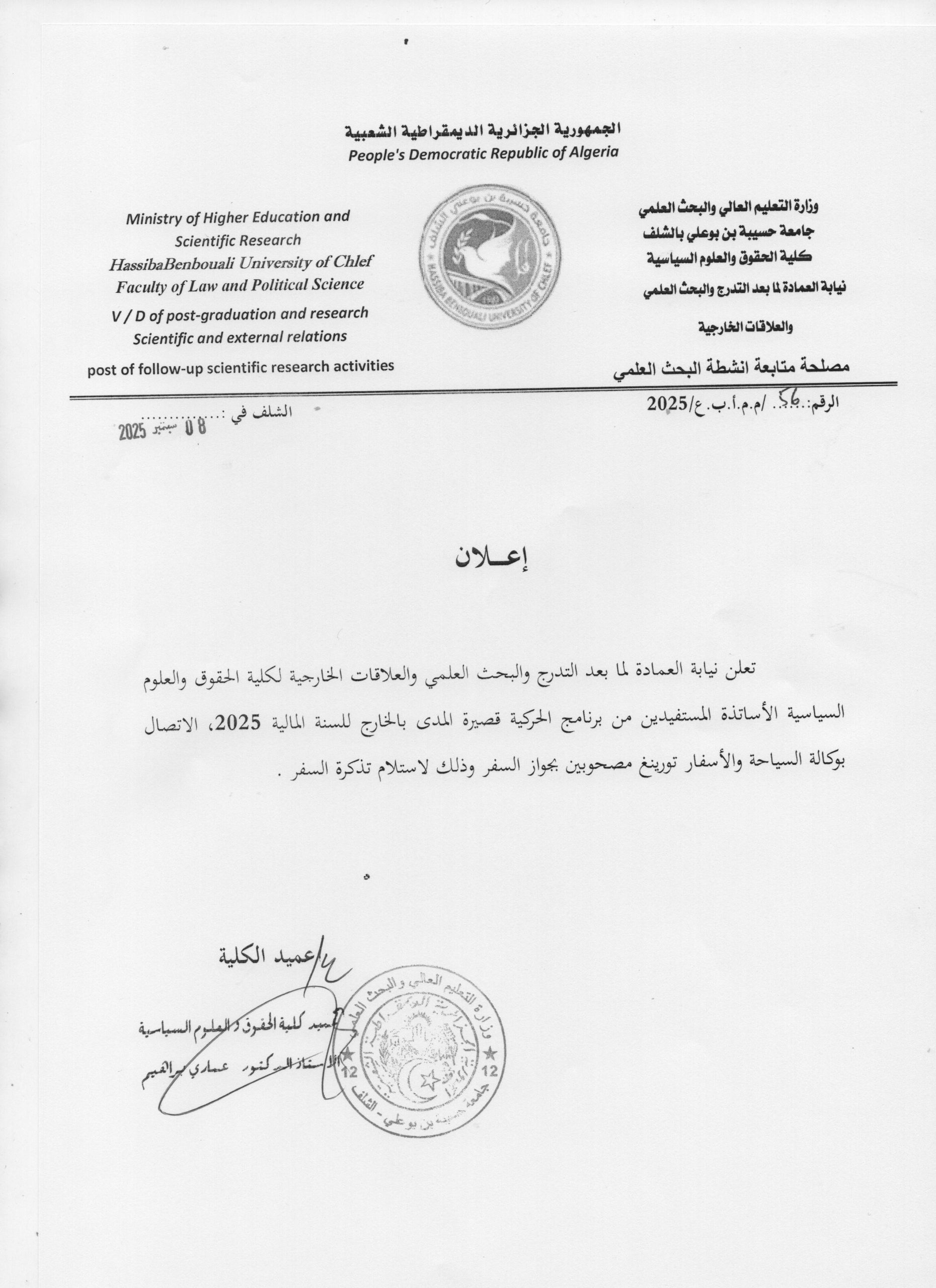اعلان هام -الطلبة المتخلفين عن مناقشة مذكرة 2025 تخرج