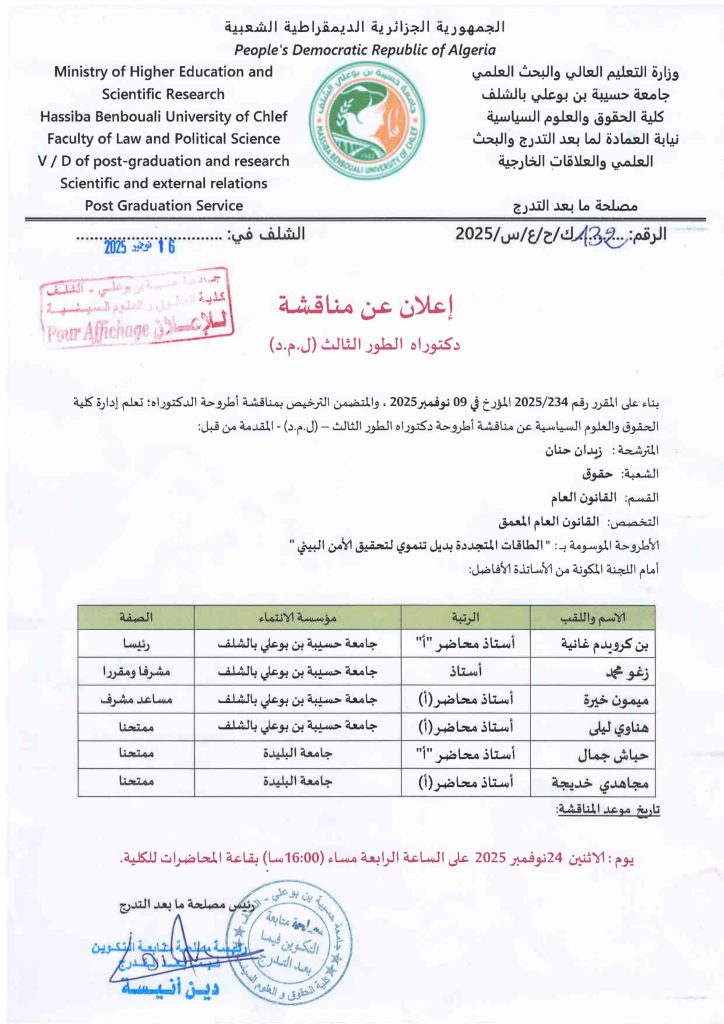 إعلان عن مناقشة دكتوراه
