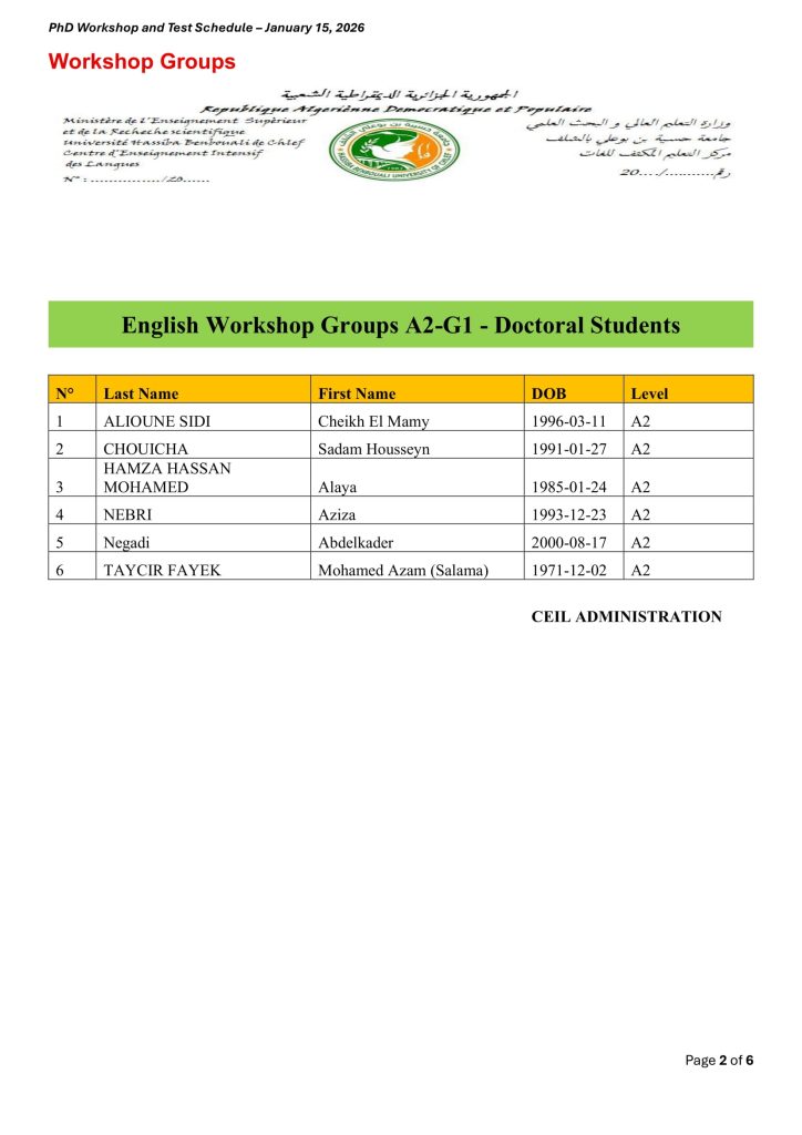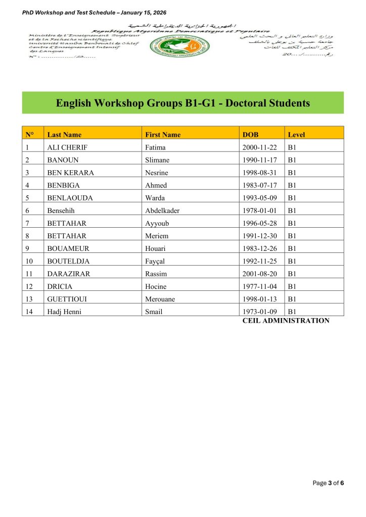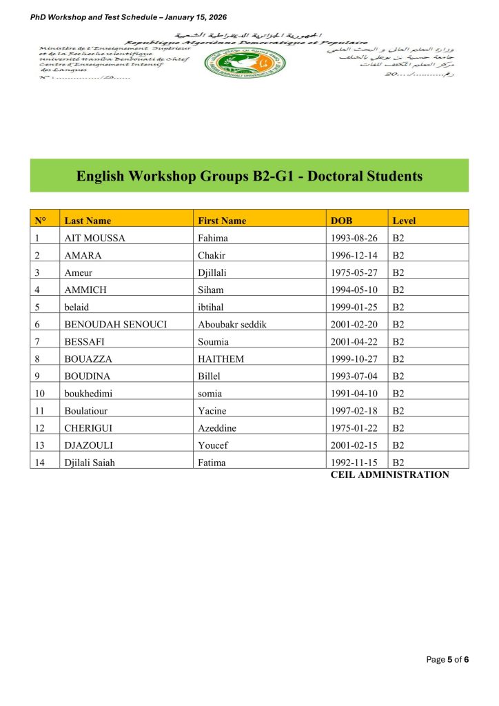 يشرفنا إعلامكم بتنظيم ورشات تكوين في اللغة الإنجليزية متبوعة بـ الامتحان النهائي للدورة الثانية، وذلك وفق البرنامج التالي: