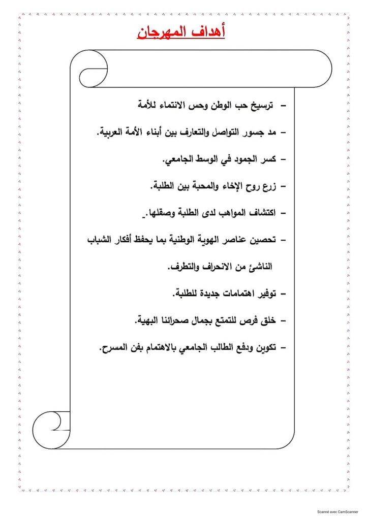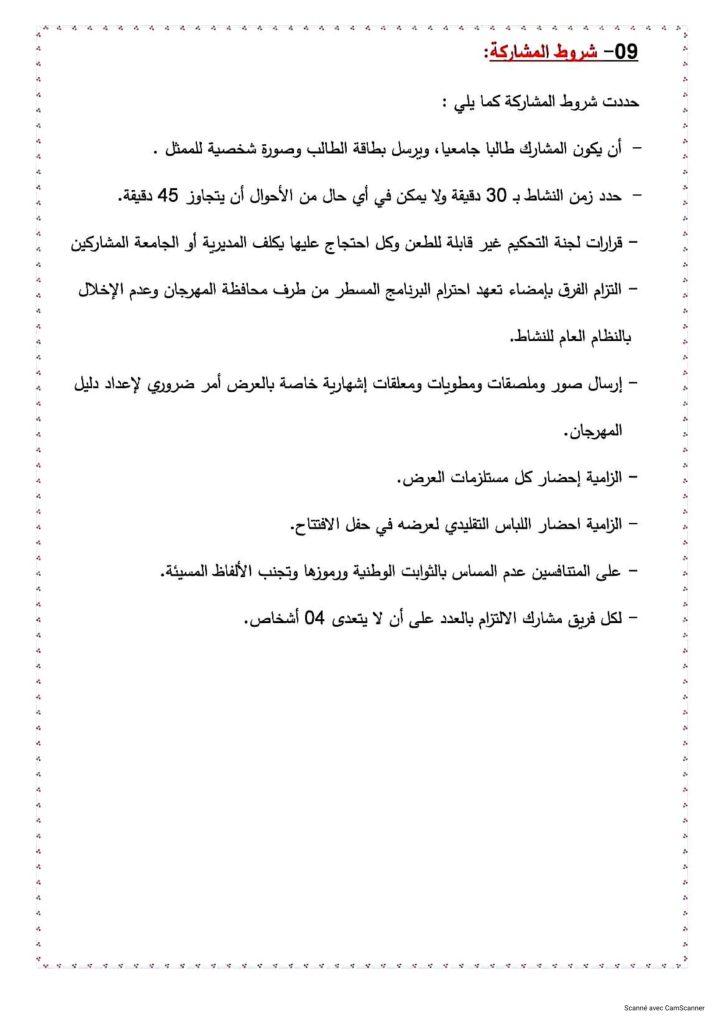 “تعلم المديرية الفرعية للانشطة العلمية الثقافية والرياضية جميع طلبة الكلية الراغبين في المشاركة وتمثيل الجامعة في المهرجانين الوطنيين الجامعيين: