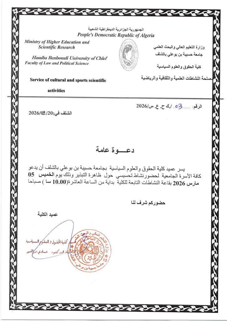 #إعـــــــــــلان# تحيين برنامج التدريس عن بعد_السداسي الثاني_شعبتي الحقوق والعلوم السياسية_الموسم الجامعي2026/2025.
